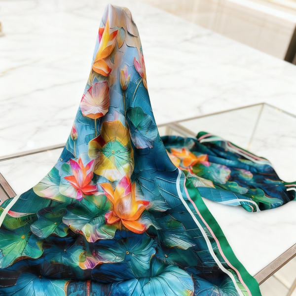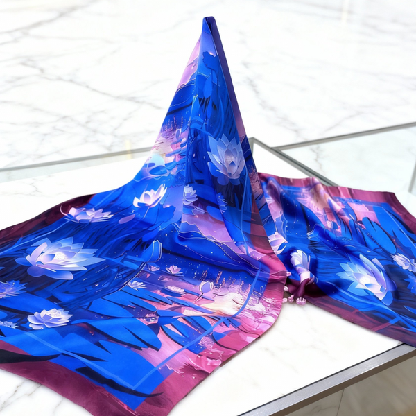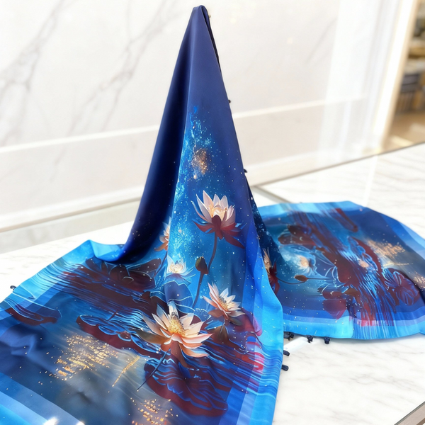 Mô tả: Khăn Choàng Thái Tuấn Chất liệu: Lụa tổng hợp Quy cách: 100*100 cm Hoa văn chuyên biệt. Công nghệ: In