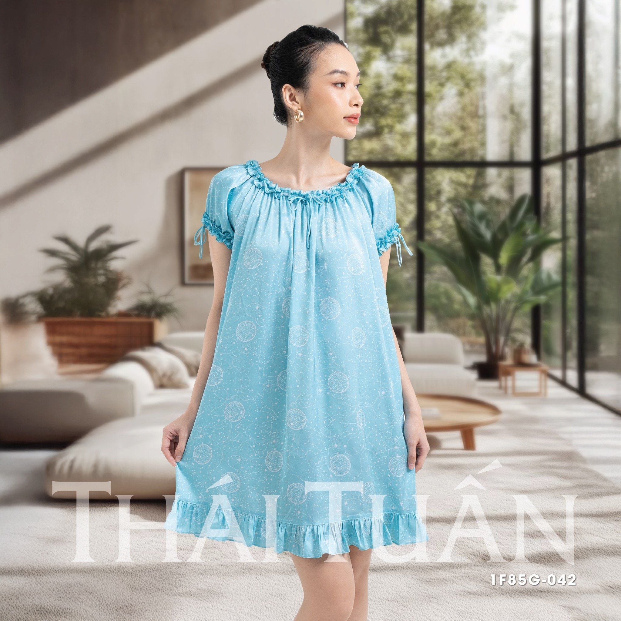 1F85G042 Đầm Ngủ Nữ Tay Ngắn Họa Tiết Ánh Sao – Công Ty Cổ Phần Tập Đoàn Thái Tuấn