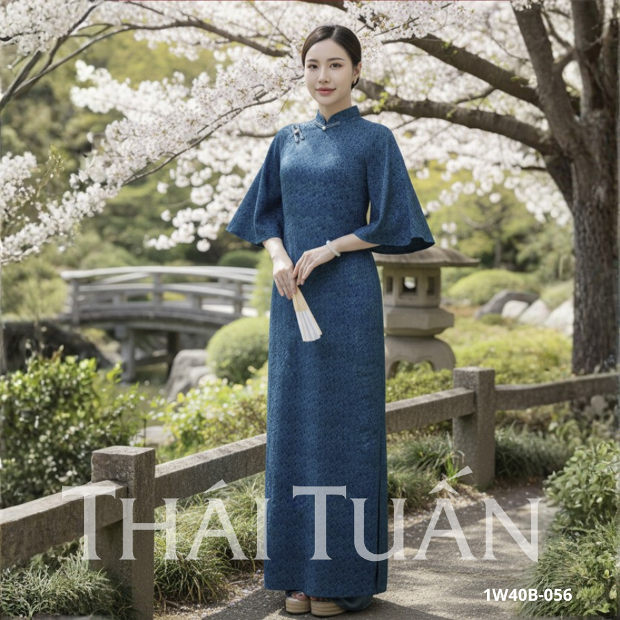 Áo Dài May Sẵn Cho Nữ Chất Liệu Gấm Bố Cao Cấp Màu Xanh 1W40B056