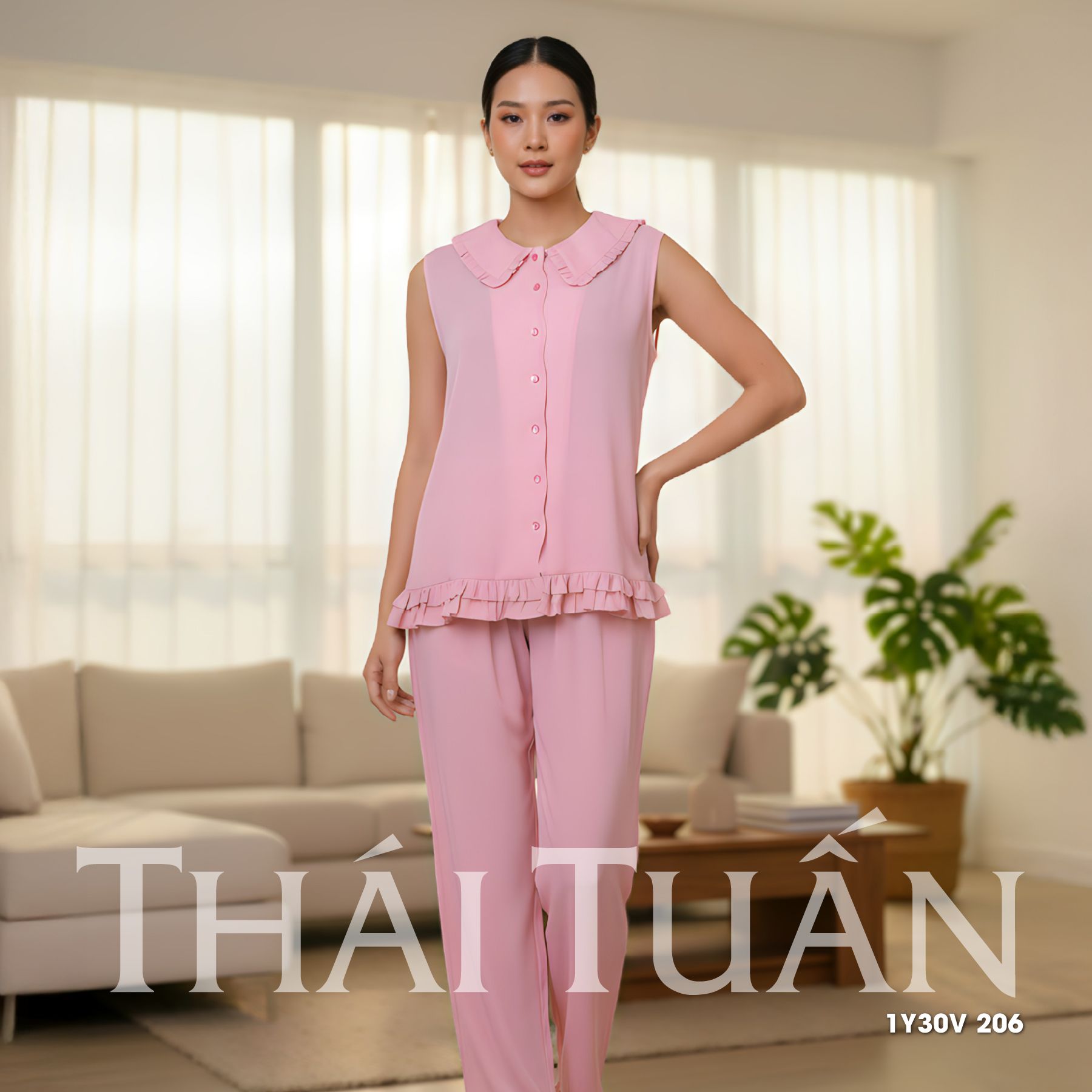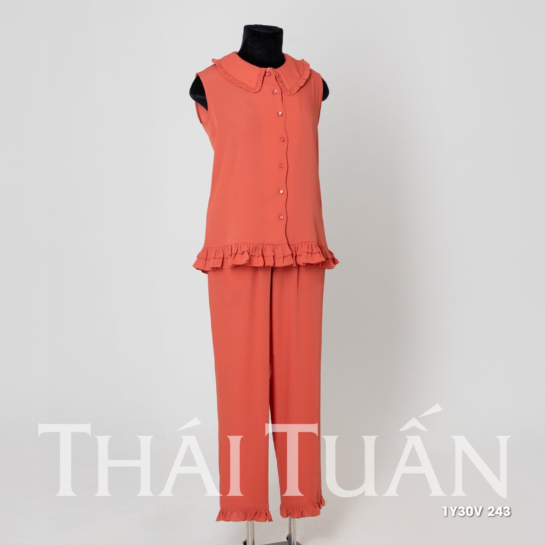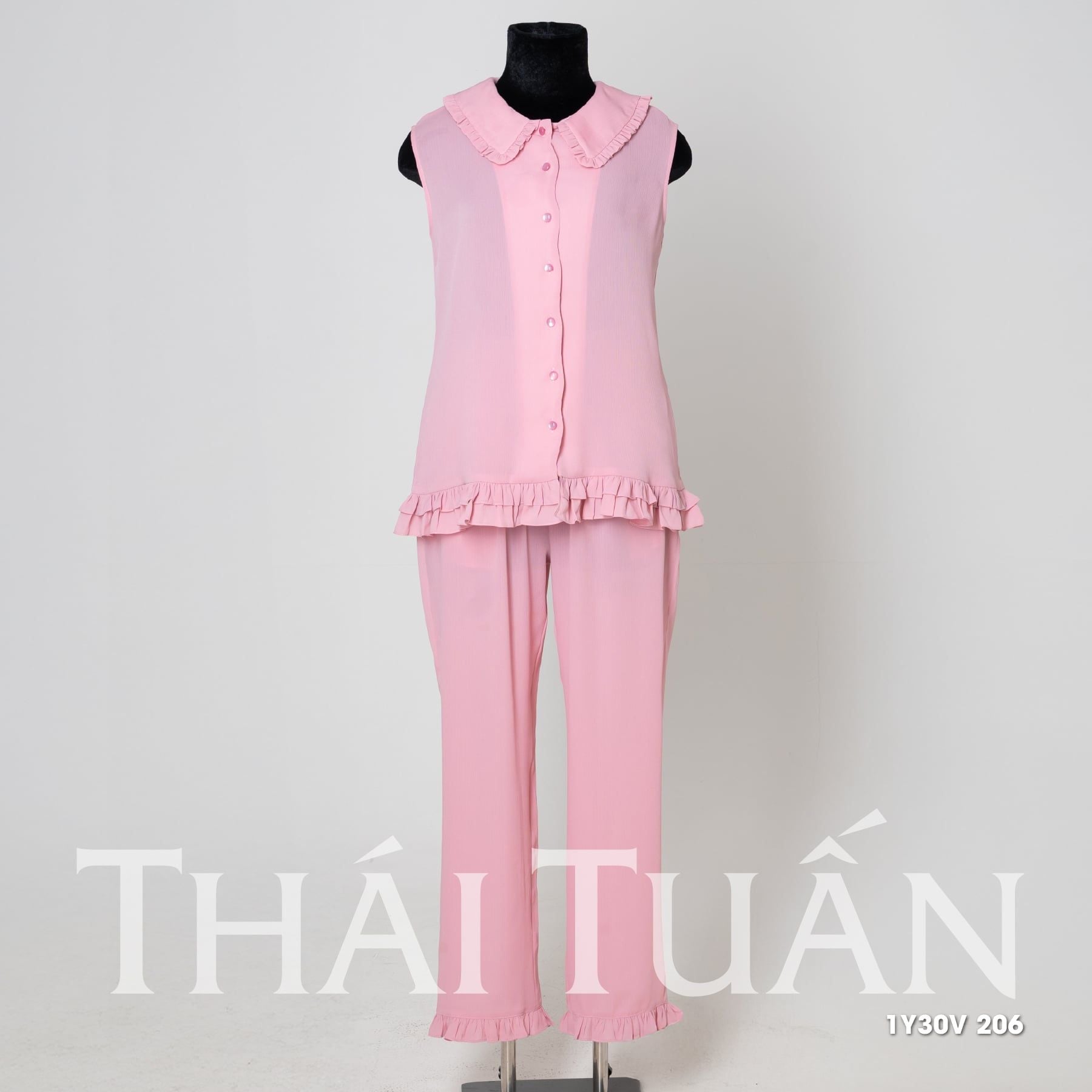 1Y30V Bộ Đồ Mặc Nhà Cao Cấp Cổ Sen Quần Dài