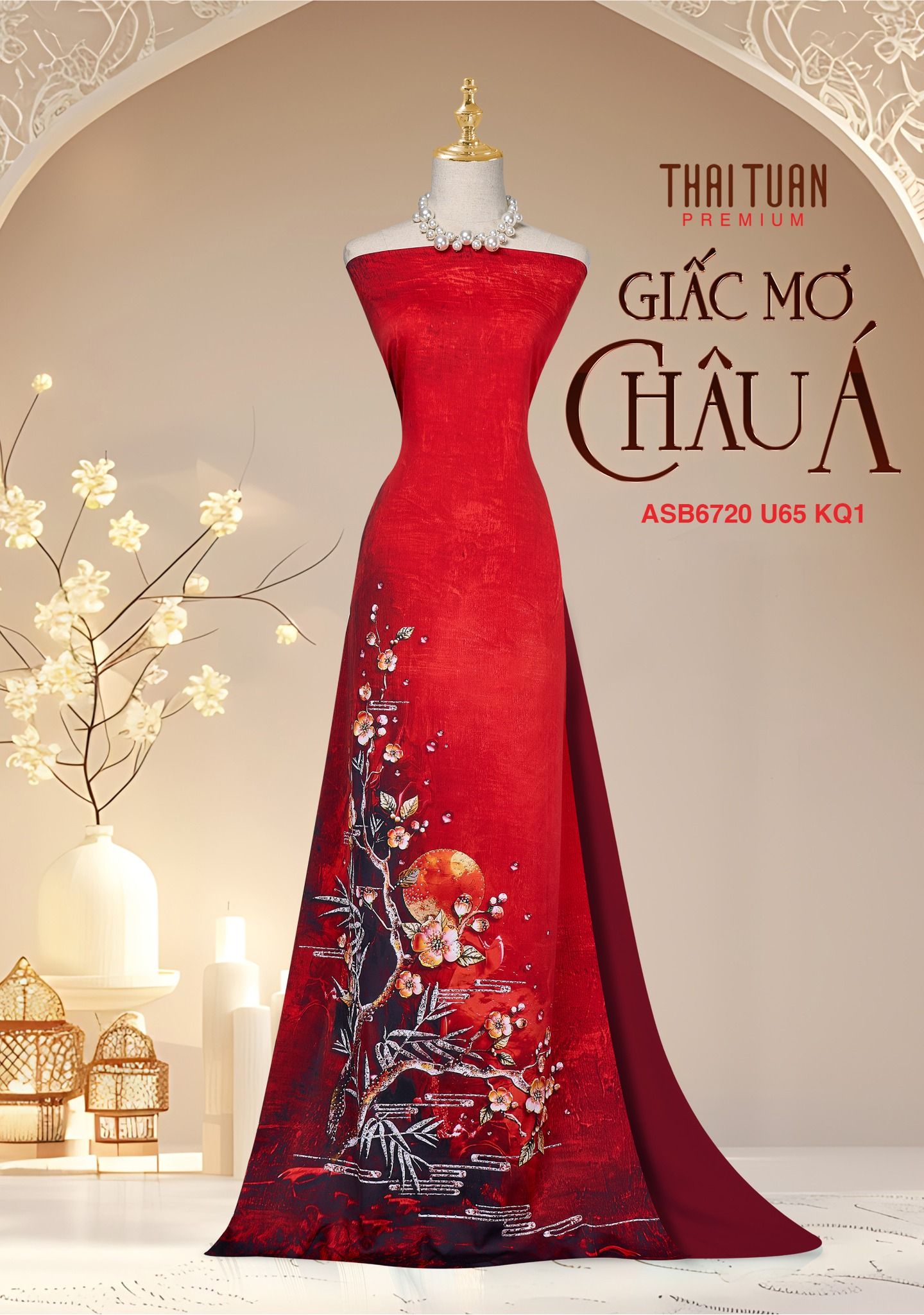ASB6720U65KQ1 Vải Áo Dài Satin Đính Đá Hương Thơm Kháng Khuẩn Khổ 1m50 x Dài 2m3
