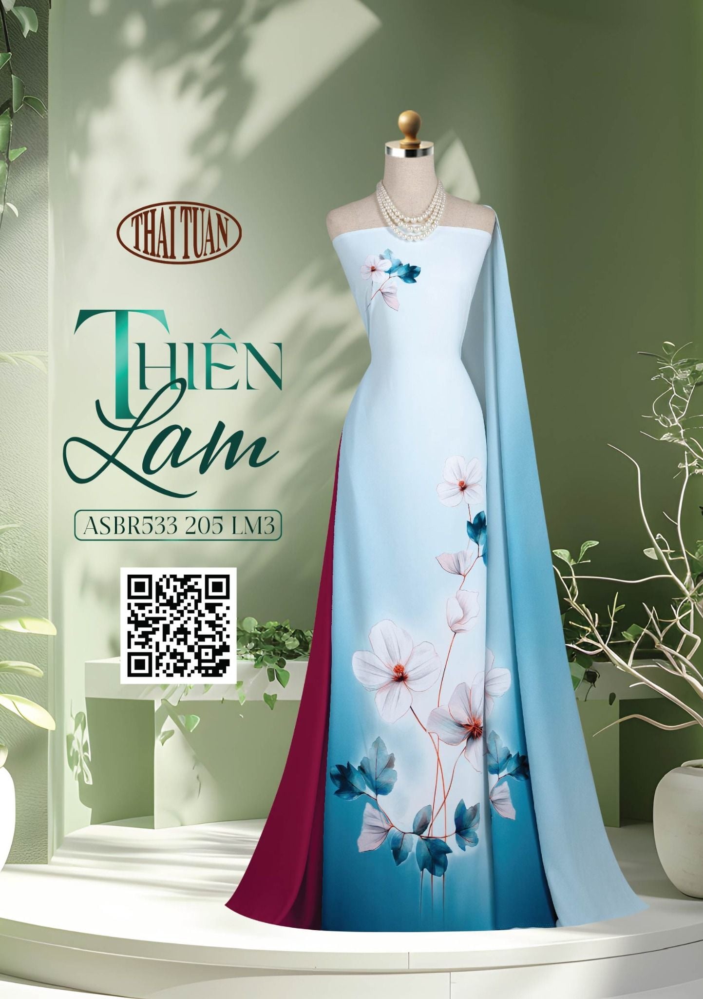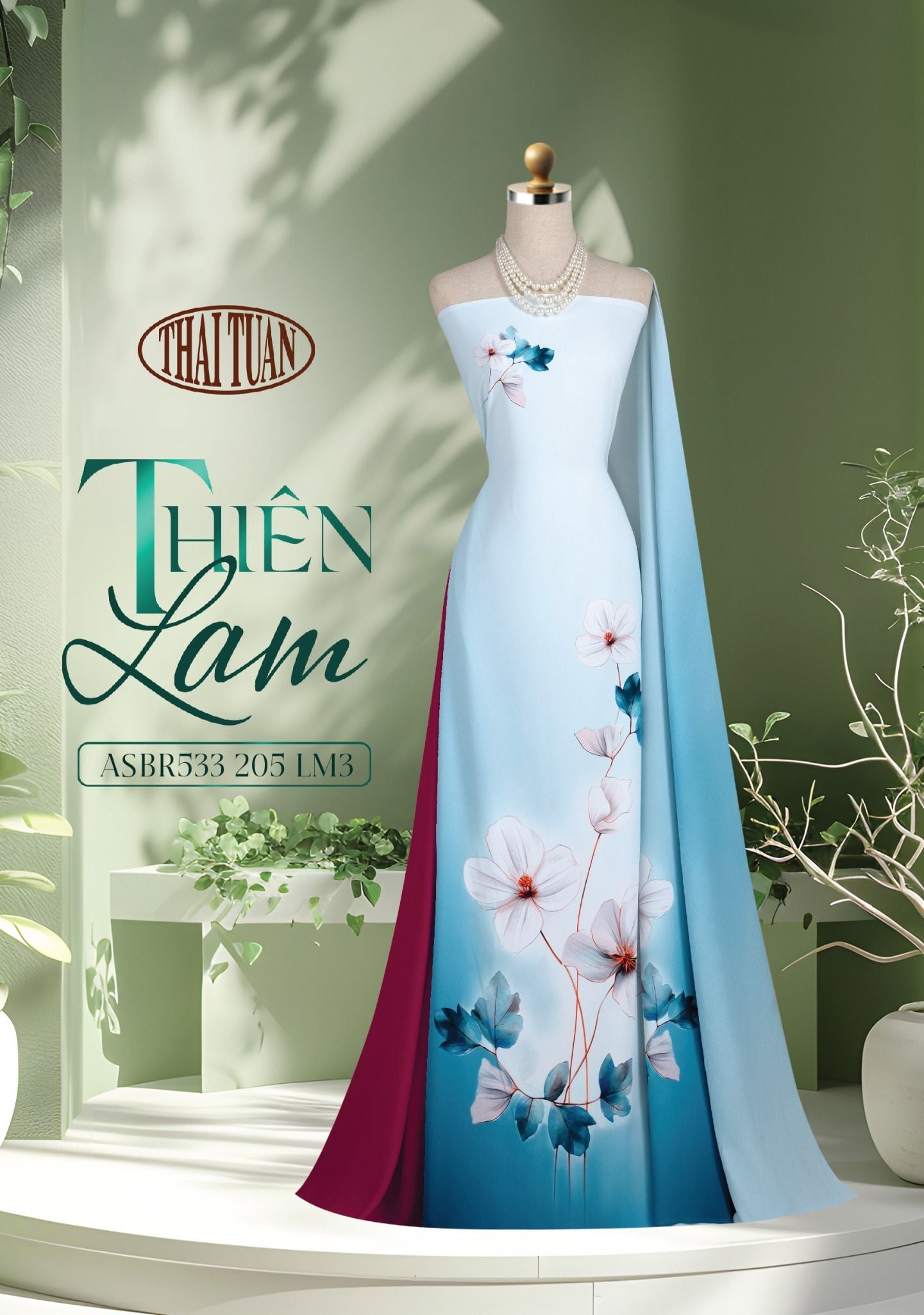 ASBR533205LM3 Vải Áo Dài Sắc Phương Nam Thiên Lam Kháng Khuẩn Khổ 1m50 x 2m1