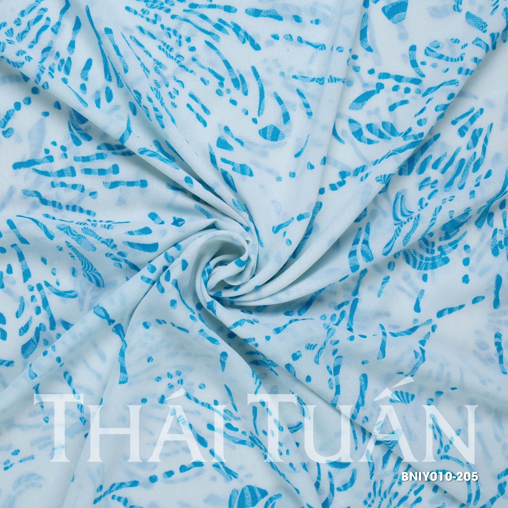 BNIY010-205 Vải Gấm Lụa Hoa Màu Trắng Họa Tiết Xanh Khổ 1m15 x 2m5