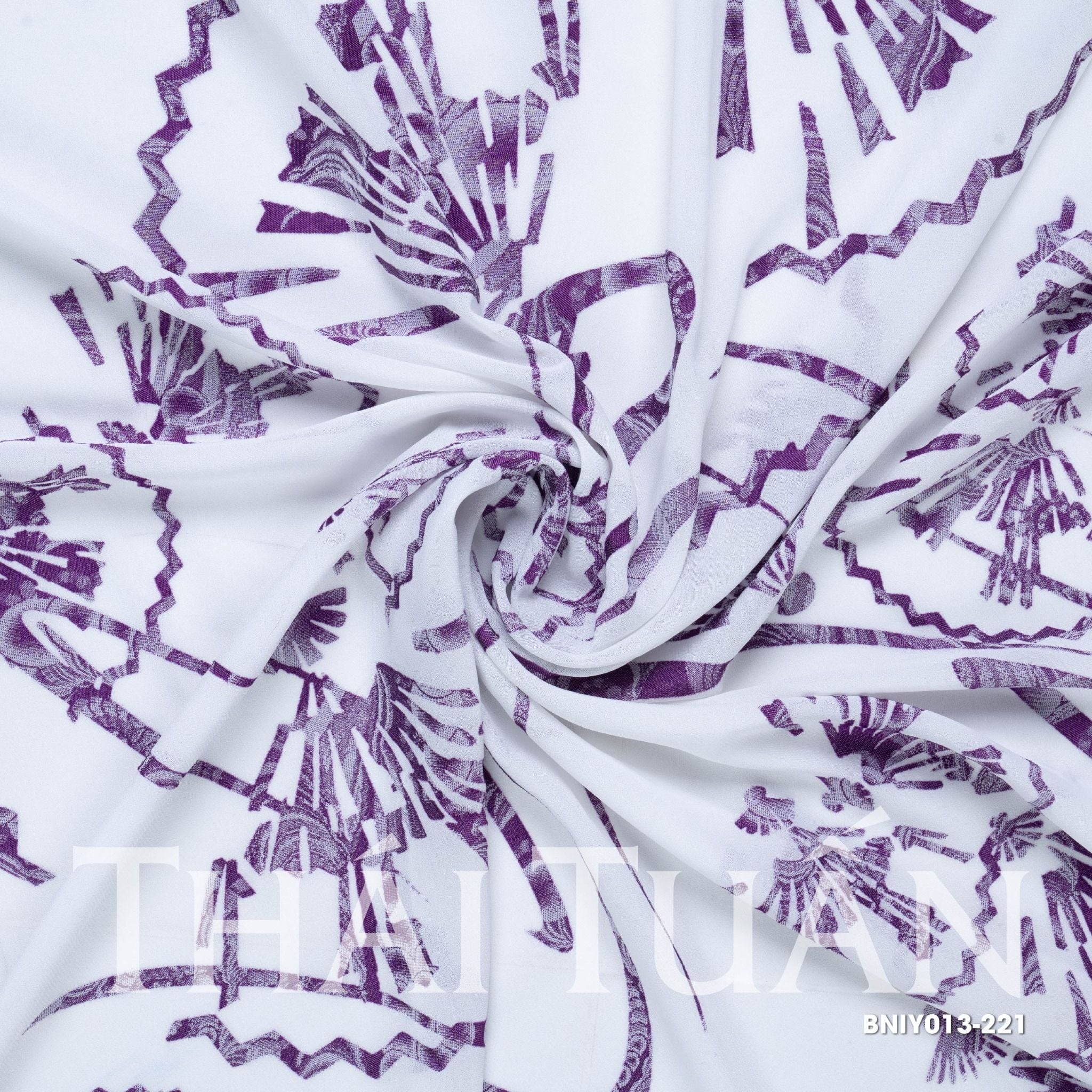 BNIY013-221 Vải Gấm Lụa Hoa Màu Trắng Họa Tiết Tím Khổ 1m15 x 2m5