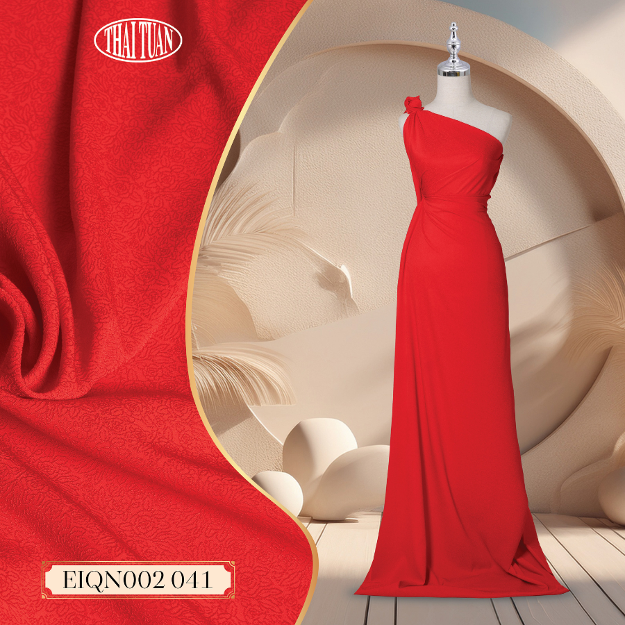EIQN002-041 Vải Gấm Hoa Màu Đỏ Khổ 1m15 x 2m5