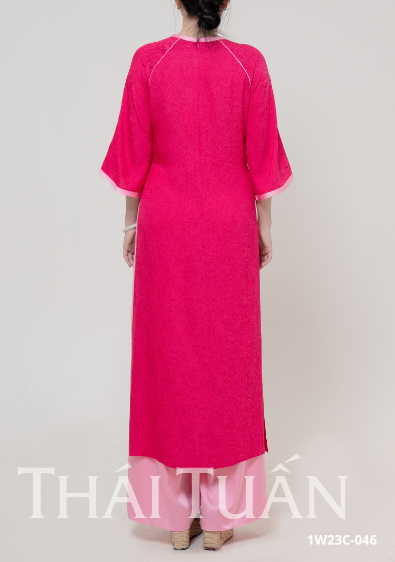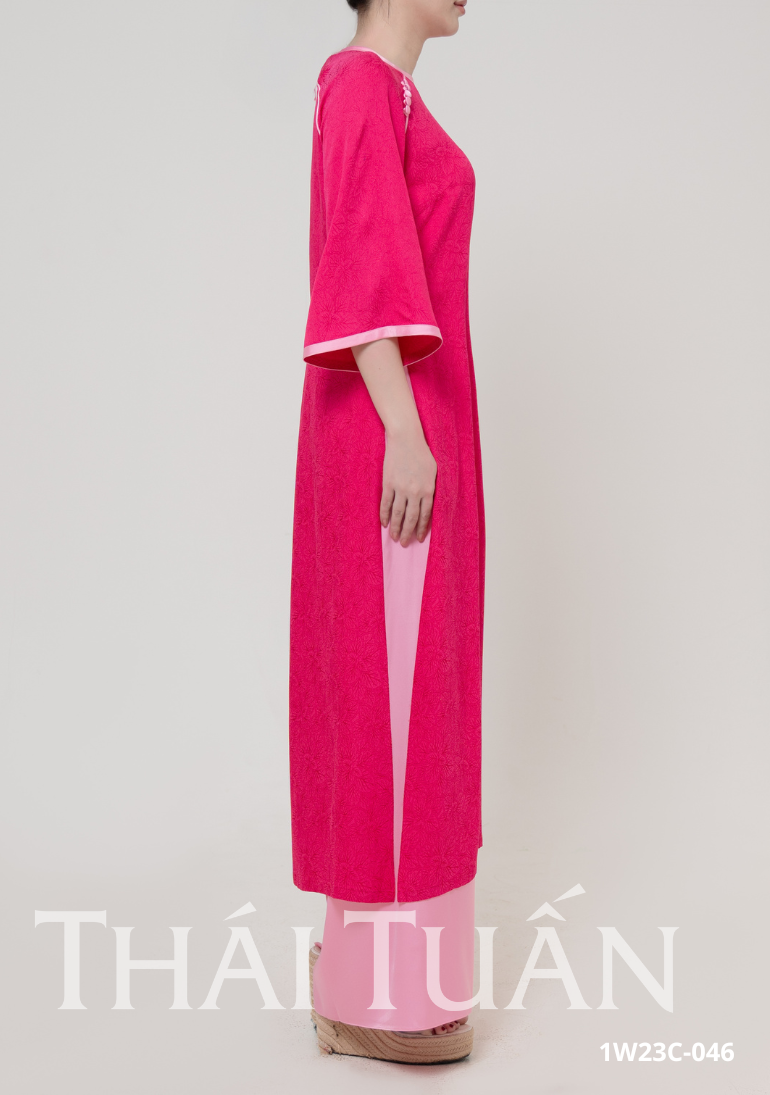 Áo Dài May Sẵn Nữ Tay Lỡ Nút Chất Liệu Gấm Màu Hồng Sang Trọng 1W23C046