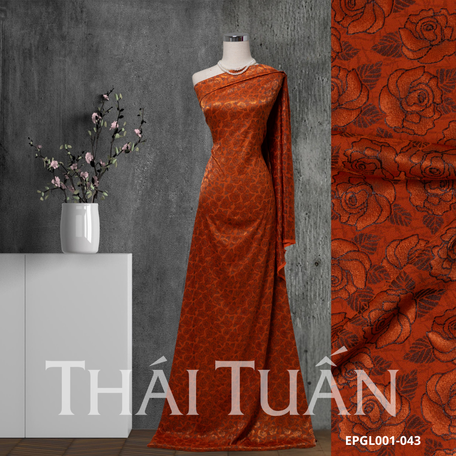 Vải Gấm Hoa Dạ Kim Màu Cam Khổ 1m5x2m EPGL001043