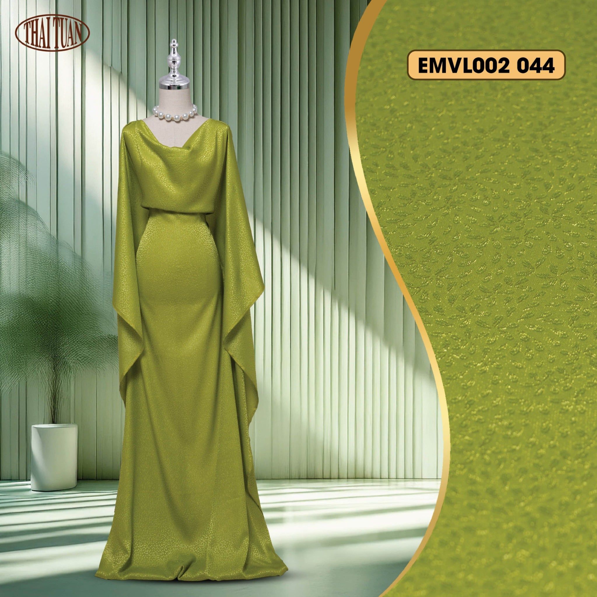 Vải Gấm Hoa Xuân Màu Xanh Úa Khổ 1m5 x 2m EMVL002044