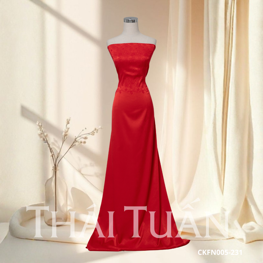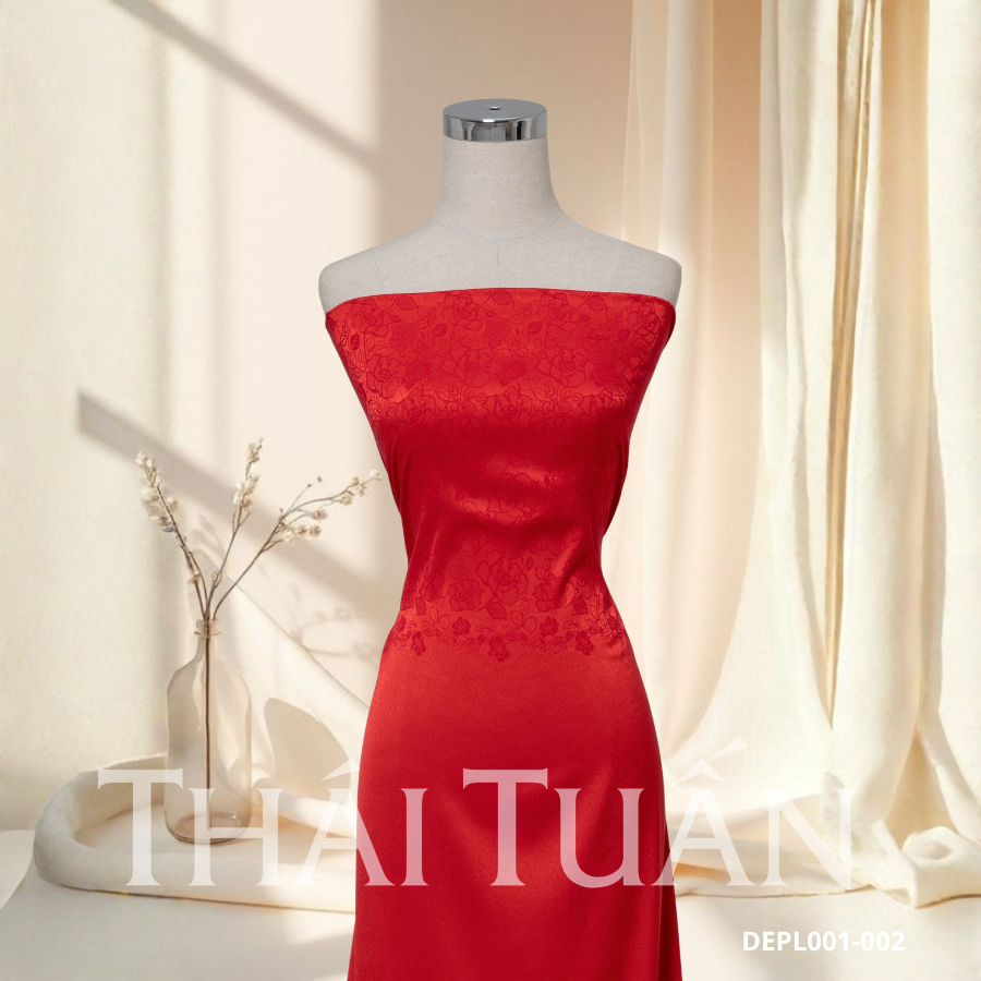 Vải Gấm Lụa Thêu Màu Đỏ Khổ 1m15 x 2m5 CKFN005231