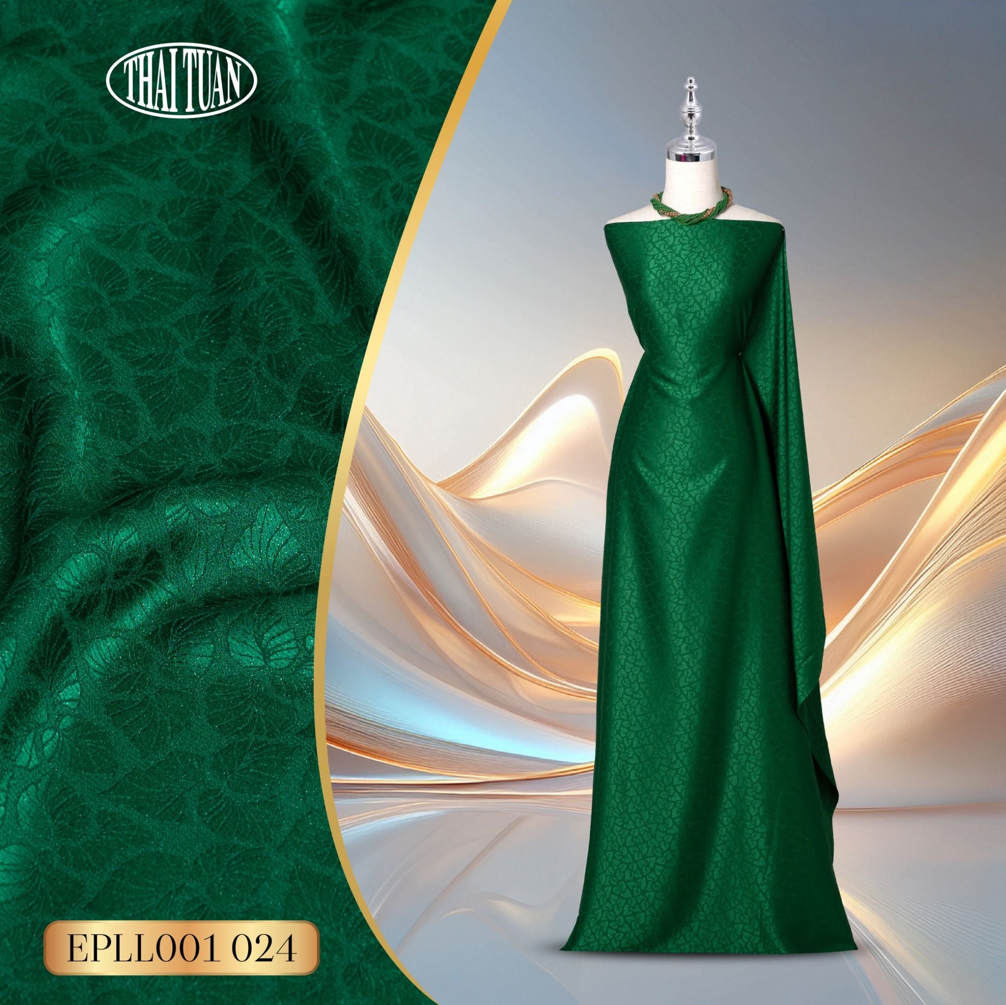 Vải Gấm Thái Tuấn - Gấm Hoa Co Giãn Mới Màu Lá Khổ 1m5 x 2m EPLL001-024